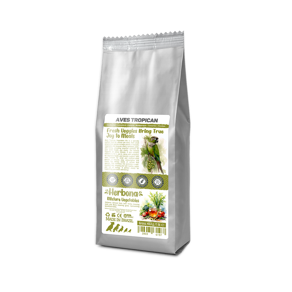 میکس سبزیجات هربونا آوس تروپیکن یک غذای کامل و علمی برای انواع پرندگان زینتی و طوطیهای خانگی از گونههای کوچک تا جثههای بزرگ است. این ترکیب ویژه با الهام از طبیعت، شامل 🥦 بروکلی تازه، 🌿 ساقههای ترد کرفس، 🍅 گوجهفرنگی آبدار، 🌱 نخودفرنگی شیرین و شیرینی ملایم 🍯 عسل طبیعی میباشد.